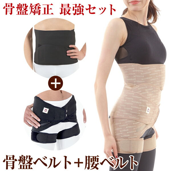 腰痛ベルト 骨盤ベルト で お腹のプニョ肉もスッキリ! 骨盤矯正ベルト コシラック ベルトタイプと背骨 ウエスト回りをサポートするワンベルトのお得なセット 男女兼用 ブラック ベージュ ( メンズ 産後ケア 猫背 肩こり 骨盤 サポーター コルセット 股関節 )